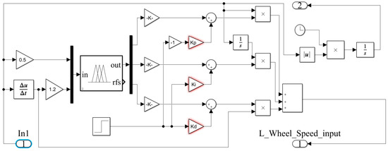 Taking the first case as an example, the PSO fuzzy PID simulation model built in Simulink is shown in Figure 8. The specific sub-modules are shown in Figure 9, Figure 10 and Figure 11.