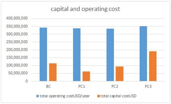 Fixed and working capital investments are the two categories of capital investment [24]. Manufacturing fixed capital includes expenses such as those required for the full operation of the process, such as instruments, foundations, insulation, piping, and site separation. Working capital includes expenses required for operation. The sum of both is known as total capital investment.