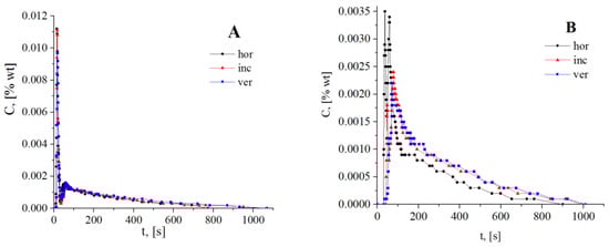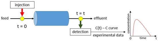 The principle of the tracer methodology (pulse input) is presented in Figure 2. To compute the response curve accurately, the injection/detection position should be adequately chosen (Figure 2), and the boundary conditions at both ends of the system must be known (Figure 4) [58].