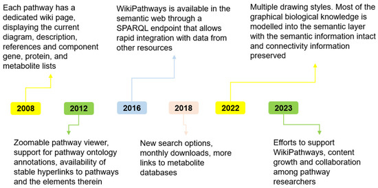 WikiPathways project’s retrospective development, from 2008 to the present.