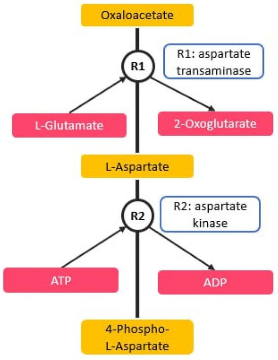 - Trinh, C.T.; Wlaschin, A.; Srienc, F. Elementary Mode Analysis: A Useful Metabolic Pathway Analysis Tool for Characterizing Cellular Metabolism. Appl. Microbiol. Biotechnol. 2009, 81, 813–826. [Google Scholar] [CrossRef]
