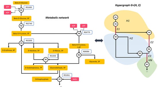 Therefore, the hypergraph views the reaction as an integral whole and indicates transformations between any number of metabolites (chemical transformation participants) [].