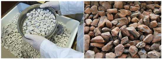 Materials used for biogas desulfurization. (Left) Cellular concrete (CC). (Right) Expanded schist (ES).