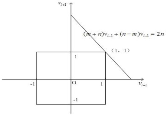 Rectangle (Figure 2) is under the split line, so it satisfies the inequality (25) except for , which is shown in Figure 2. Therefore, can be inferred.