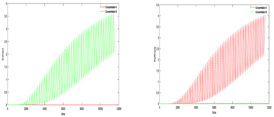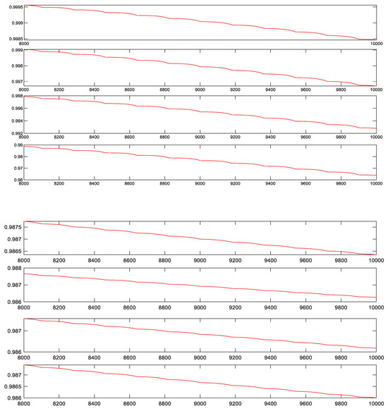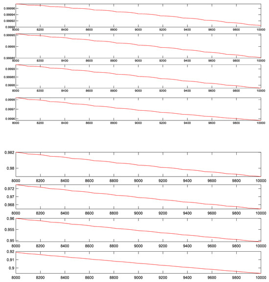 Let represent the infinitesimals of the same order. Provided that the time step is sufficiently small, matrices A and B exhibit strict diagonal dominance, rendering them nonsingular. Therefore, we can establish the stability of the iterative process involved in calculating the SMB system using the Crank–Nicolson method. By ensuring that the time step is small enough, the strict diagonal dominance of matrices A and B guarantees their nonsingularity, reinforcing the stability of the iterative process employed in the computation of the SMB system using the Crank–Nicolson method.