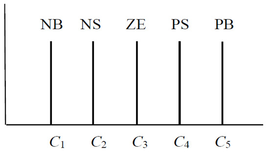 In the subsequent SMB control process, the increments of the flow rate in region I, in region II, and in region III are chosen as three independent defuzzification output variables denoted as , respectively. The membership function of is shown in Figure 7.