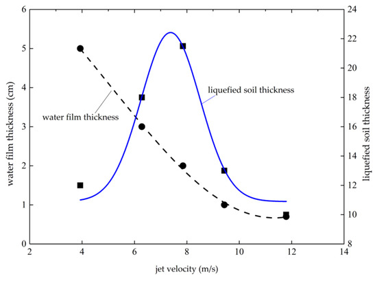 - The water film thickness was 5 cm, and the liquefied soil thickness was 12 cm, which was based on the continuous jet.