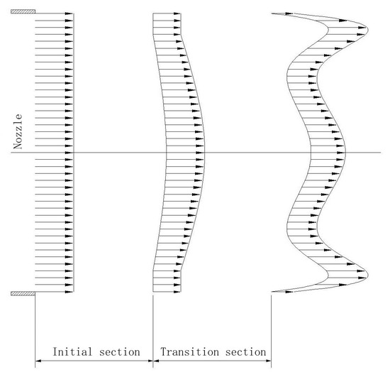 The main control parameters of a water jet include the driving pressure, jet velocity, jet type, etc. In order to eliminate the bottom-sitting adsorption effect of a submersible, the jet parameters need to be controlled to accelerate the liquefaction of soil and then to restore the buoyancy of a submersible. According to the existing analysis, the jet velocity and jet type are considered to be the main control parameters. The water jet type can be classified as continuous, pulsed or mixed which were shown in Figure 2 [5].