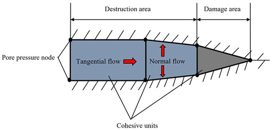 Fluid flow in the damaged area of the cohesive unit is divided into tangential flow along the cohesive unit, which can be characterized by Newton or power-law fluid models, and the normal flow perpendicular to the upper and lower surfaces of the cohesive unit can reflect the resistance caused by agglomeration and scaling, such as Figure 1 shows. The basis of fluid flow in this study is CFD (computational fluid dynamics), which is a hybrid finite volume method and finite element solution method to calculate incompressible laminar and turbulent flow problems with high solution accuracy [33].