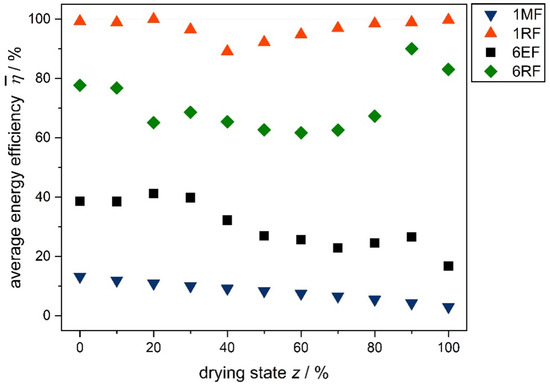 For every simulated drying state, the average energy efficiency was calculated for the control concepts according to