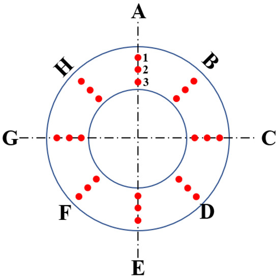 Referencing standard ISO 11960-2011, the annular specimens with a thickness of 10 mm are taken from the thinned tubing, and then the hardness of the samples (Figure 3) is tested by using a Rockwell hardness tester. The allowable error of calibration tool should be in the range of approximately 2%, and the standard deviation was given from three measurements [30]. The hardness of the thinned tubing is between 25.5 HRC and 30.1 HRC, and the average hardness is 27.89 HRC (Figure 4). According to the standard NACE MR0175, the hardness of P110S steel in H2S-containing surroundings should be lower than 37 HRC [31]. Therefore, the hardness of tubing does not exceed the standard requirements, which means that the hardness of oil pipe is qualified.