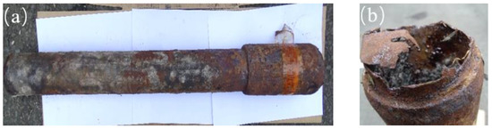 Fracture of tubing due to corrosion. (a): Tubing body; (b): local fracture.