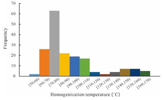 4.5. Petrography and Homogeneous Temperature of Fluid Inclusion