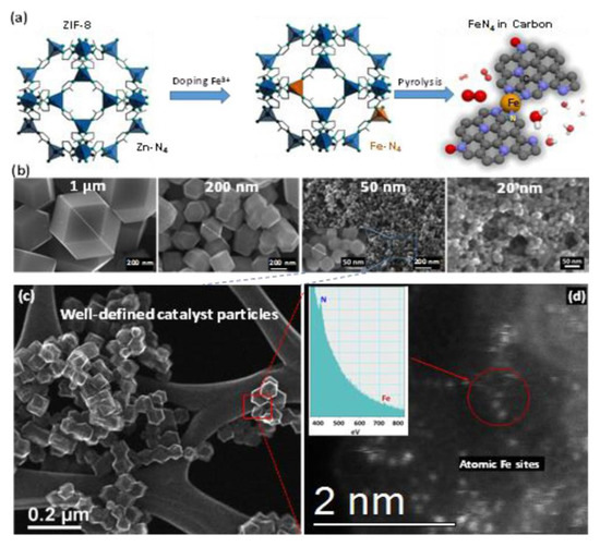 - Zhang, H.; Hwang, S.; Wang, M.; Feng, Z.; Karakalos, S.; Luo, L.; Qiao, Z.; Xie, X.; Wang, C.; Su, D.; et al. Single Atomic Iron Catalysts for Oxygen Reduction in Acidic Media: Particle Size Control and Thermal Activation. J. Am. Chem. Soc. 2017, 139, 14143–14149. [Google Scholar] [CrossRef]