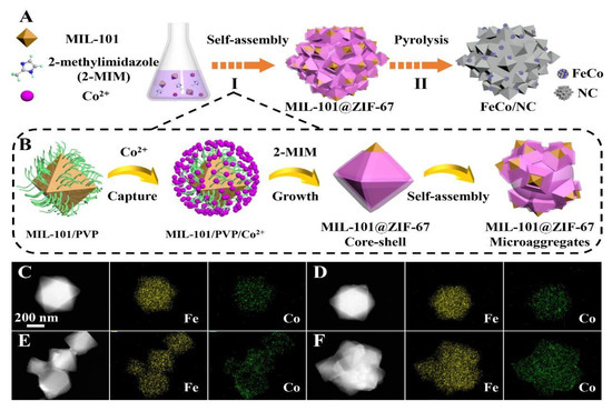 - Fang, X.; Jiao, L.; Yu, S.H.; Jiang, H.L. Metal-Organic Framework-Derived FeCo-N-Doped Hollow Porous Carbon Nanocubes for Electrocatalysis in Acidic and Alkaline Media. ChemSusChem 2017, 10, 3019–3024. [Google Scholar] [CrossRef]