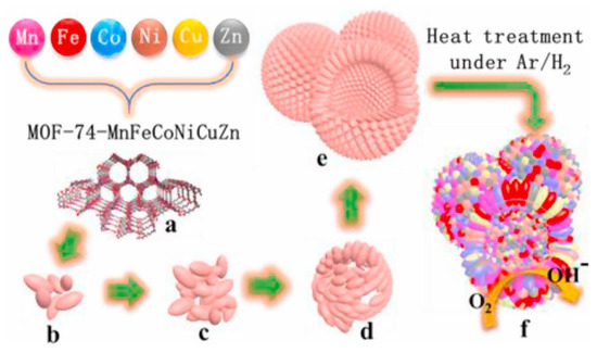 - Hu, J.; Cao, L.; Wang, Z.; Liu, J.; Zhang, J.; Cao, Y.; Lu, Z.; Cheng, H. Hollow high-entropy metal organic framework derived nanocomposite as efficient electrocatalyst for oxygen reduction reaction. Compos. Commun. 2021, 27, 100866. [Google Scholar] [CrossRef]
