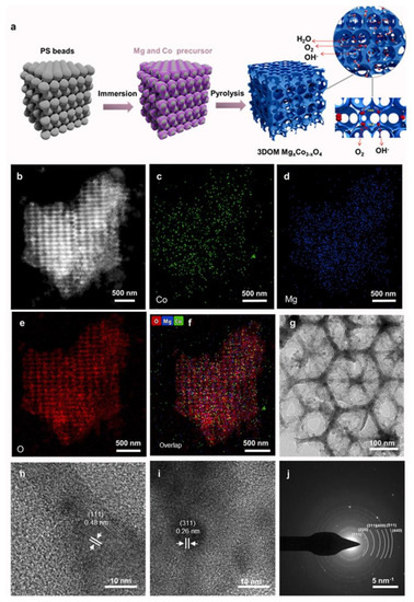 - Zhang, Y.; Zhang, Z.; Jiang, G.; Mamaghani, A.H.; Sy, S.; Gao, R.; Jiang, Y.; Deng, Y.; Bai, Z.; Yang, L.; et al. Three-dimensionally ordered mesoporous Co3O4 decorated with Mg as bifunctional oxygen electrocatalysts for high-performance zinc-air batteries. Nano Energy 2022, 100, 107425. [Google Scholar] [CrossRef]