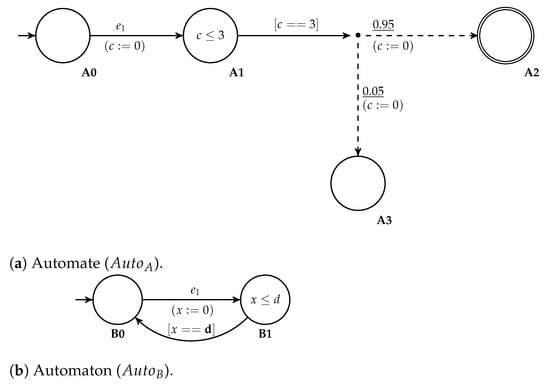 - Alur, R.; Dill, D.L. A theory of timed automata. Theor. Comput. Sci. 1994, 126, 183–235. [Google Scholar] [CrossRef]
