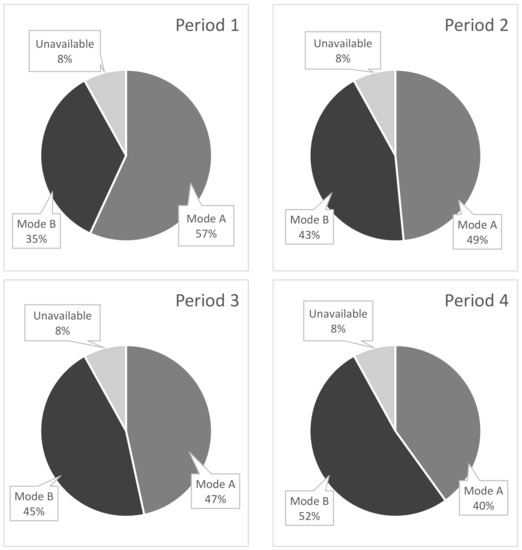 Figure 6 shows the time distribution of the upgraded plant over the four periods for each mode, noting that the existing plant would devote all of its available productive hours to Mode A. Throughout the four periods, Mode B occupies an increasingly large portion of time, and finally dominates in the final period.
