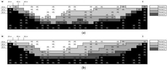 Schematic view of mine plan (XZ-planar cut along middle Y value) associated with the existing (a) and upgraded plant designs (b). HS: high silica blocks.