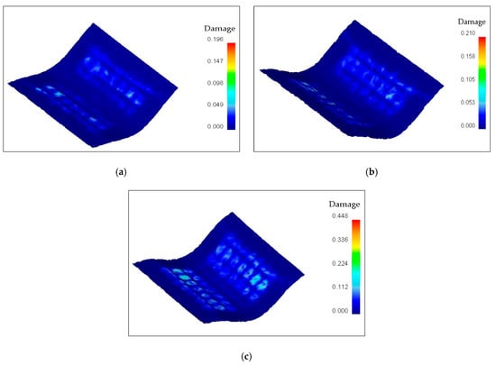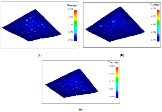 Damage factors of form2 with (a) 10 mm pins; (b) 12 mm pins; (c) 14 mm pins.