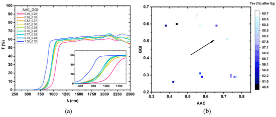 Transmission measurements of the sample series with low Ga content (GGI ratio between 0.25 and 0.30) and AAC varying between 0.46 and 1.00 are shown in
