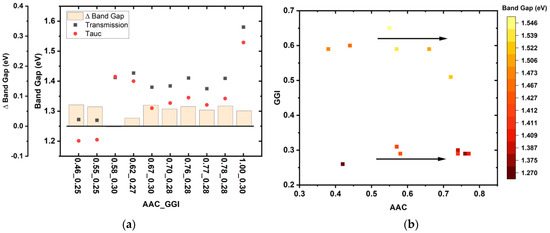 –0.30) are presented in dependence of AAC and color-coded by band gap. Accordingly,