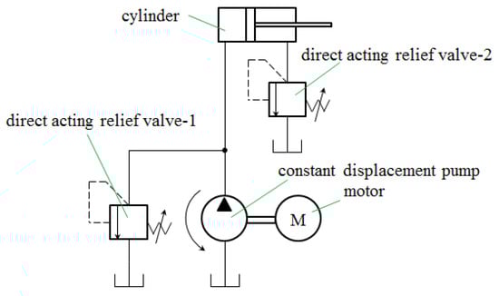 - Syrkin, V.V.; Balakin, P.D.; Treyer, V.A. Study on hydraulic direct-acting relief valve. J. Phys. Conf. Ser. 2017, 858, 12035. [Google Scholar] [CrossRef]