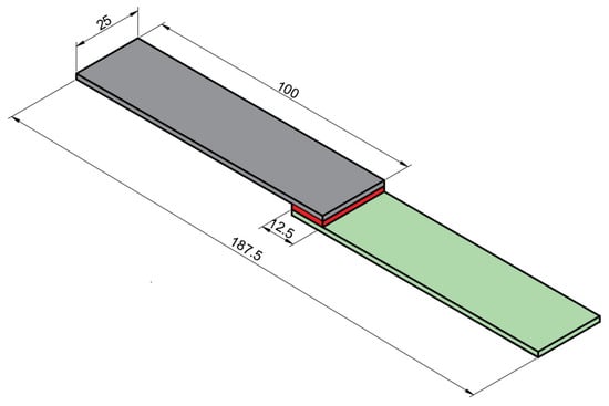 The type of joint used in the experiments was the single-lap joint model given in Figure 3. The usual test for this type of joint is the ASTM D 1002 [39].