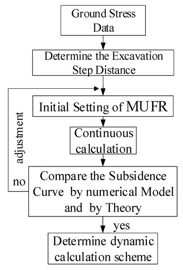 - In order to study the movement of overlying strata, a numerical simulation model was constructed, and the accuracy of the numerical model was demonstrated by verifying the surface subsidence data, the law of ground pressure, and the recovery distance of the goaf. Moreover, the dynamic excavation parameters of the numerical simulation were determined, and a simulation method of dynamic movement of overlying strata was provided.