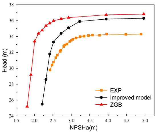Figure 4 compares our experimental results with the cavitation performance curves before and after improvements to the cavitation and turbulence models.