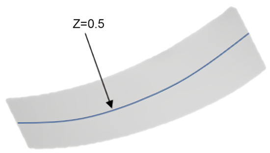 We demonstrated the impact of cavitation on the centrifugal pump’s operating performance by analyzing the load distribution at different degrees of cavitation on the vane’s pressure and suction surfaces. We selected the intersection line between any of the centrifugal pump’s vane surfaces and the impeller runner with a z = 0.5 rotational tangent (Figure 10).