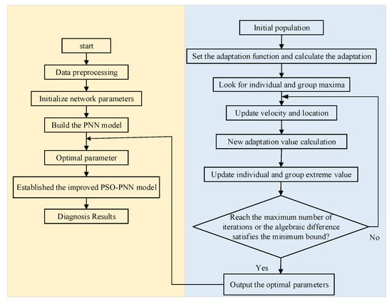 In this section, an improved PNN model is designed to realize accurate and efficient diagnosis of transformer faults. In detail, Section 2.1 gives the coding rules for the ratio of dissolved gas in the transformer according to the traditional three-ratio method. Then, Section 2.2 clearly introduces the flow chart of the selection of smoothing factor through the PSO algorithm, through which the global optimal solution can be obtained. Finally, the complete solution process is described in Section 3.3.