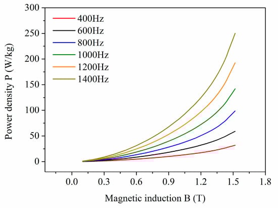 B-P curves of silicon steel B27AV1400 at different frequencies.