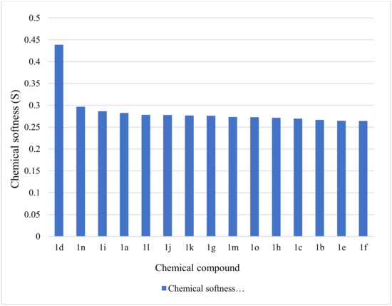 Graphic representation of chemical softness for the compounds 1a–1o.