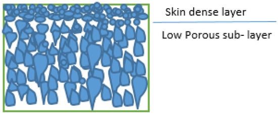 However, a very low flux and rejection ratio result from the low-porosity sublayer and dense skin layer (Figure 2). As a result, many researchers focused on using additives in the CA membrane casting solution to improve the membranes’ properties. Polyvinylpyrrolidone (PVP) has been introduced to the CA casting solution as a pore former, while hydrophilic PEG 600 has been added in order to change the membrane’s porosity [24,43,85].