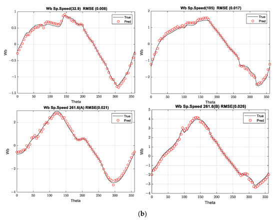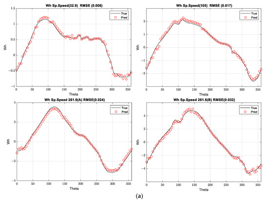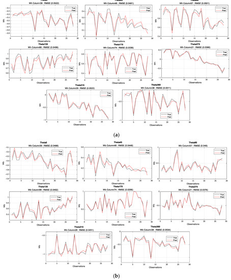 (a) Normalized dimensionless head test validation during training for all observations for column theta (0, 45, 90, 135, 175, 275, 315, 360). (b) Normalized dimensionless torque test validation during training for all observations under theta (0, 45, 90, 135, 175, 275, 315, 360).