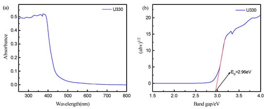 UV–vis diffuse reflectance absorption spectrum of U330: (a) ultraviolet diffuse reflectance spectrum of U330 and (b) energy band spectrum of U330.