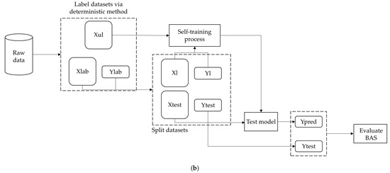 FDD workflow developed for each type of model. (a) Flowchart of supervised models. (b) Flowchart of semi-supervised models.
