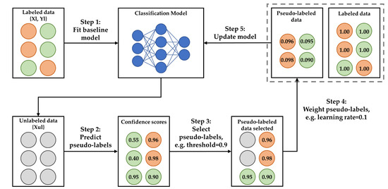 Fan et al. [22] and Fan et al. [23] used the same dataset as Yan et al. [21] and adopted a similar approach using three-layer neural networks for both fault diagnosis (16-class classification task) and unseen fault detection. Unseen (unknown) faults are those which are not in training datasets. Many combinations of semi-supervised learning parameters, these being the number of labeled data (per class), minimum confidence score for pseudo-labeling, learning rate, and maximum number of model updates, were examined. To better detect unseen faults, large confidence thresholds and learning rates were suggested.