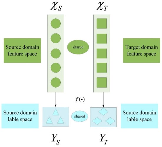 22]. Among them, domain adaptation, as one of the subdomains of transfer learning, mainly solves the problem of knowledge transfer between two domains with the same feature space and label space (isomorphic domain) through distance measurement. The metrics for distance measurement include maximum mean difference (MMD), KL divergence, and Wasserstein distance, among others. Yang et al. [