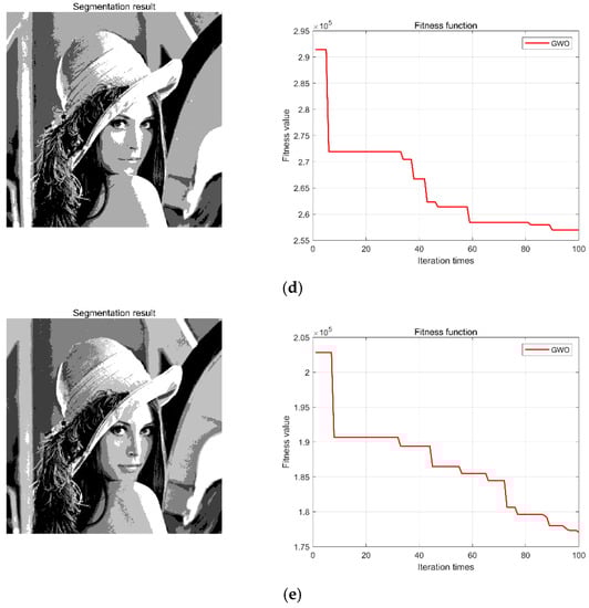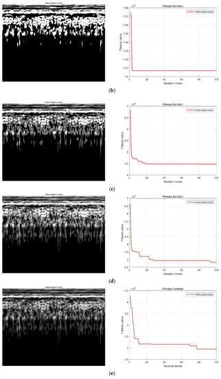 (2) The combination of a gray wolf optimization algorithm (GWO) and symmetric cross entropy (SCE) can realize the adaptive multi-threshold segmentation of CWT time–frequency map samples of the gearbox, thereby enhancing the boundary of target fault characteristics.