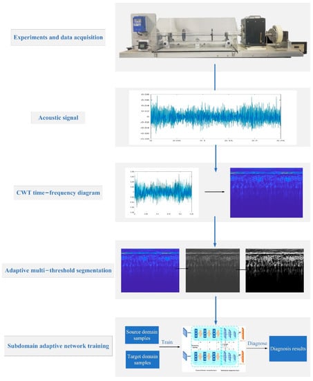Inspired by the above research, we propose a gearbox acoustic signal fault diagnosis algorithm based on adaptive multi-threshold segmentation and subdomain adaptation to solve the problem of cross-domain adaptive fault diagnosis under the condition of variable gearbox speed. The main innovations in this article are as follows: