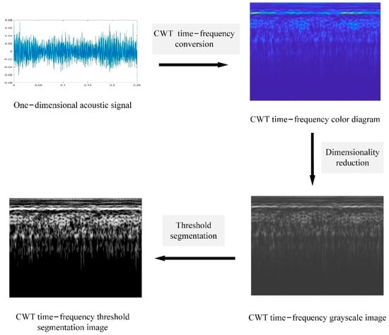 13] used STFT transform theory to obtain input images, introduced a scaled exponential linear unit (SELU) function in the network to avoid excessive ‘dead’ nodes during training, and used hierarchical regularization to obtain better training results. Although the diagnosis method of time–frequency images combined with a deep network has obtained good diagnosis results, the single signal time–frequency conversion cannot effectively highlight the fault characteristics of the sample. In this regard, some scholars have introduced the theory of threshold segmentation in image preprocessing, trying to highlight the edge factors of different key components in image samples. Threshold segmentation is a method of processing an image into a high-contrast, easy-to-recognize image with a suitable pixel value as a boundary. Therefore, it can effectively distinguish the target interest boundary in time–frequency image samples. Rakoth Kandan Sambandam et al. [