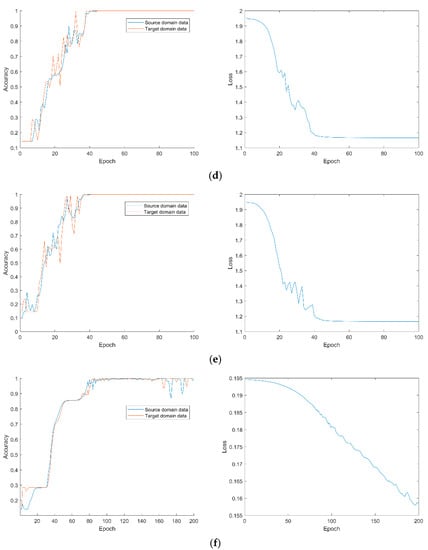 18]. However, most of the deep learning diagnosis algorithms currently assume that the training data and the test data have the same probability distribution, which is often untenable in the actual industrial environment where the operating environment is changeable and the working conditions are complex. For example, changes in operating conditions, such as equipment speed, load, normal aging, and deepening damage to faulty parts, will lead to real-time changes in the distribution of data. At this point, when a new data stream is entered, the diagnostic accuracy of the model trained on the historical data will decrease. In recent years, the concept of transfer learning has been put forward to solve the above-mentioned limitations in the fault diagnosis of industrial equipment and has been widely used. The basic problem is how to solve new fields (target domain). Obviously, a certain similarity between the source domain and the target domain is a major premise of transfer learning. Therefore, the main work of transfer learning is to reduce the feature difference between the data in the source domain and the target domain and improve the transferability between the data so as to achieve the purpose of knowledge transfer and reduce the amount of data participation in the target domain [