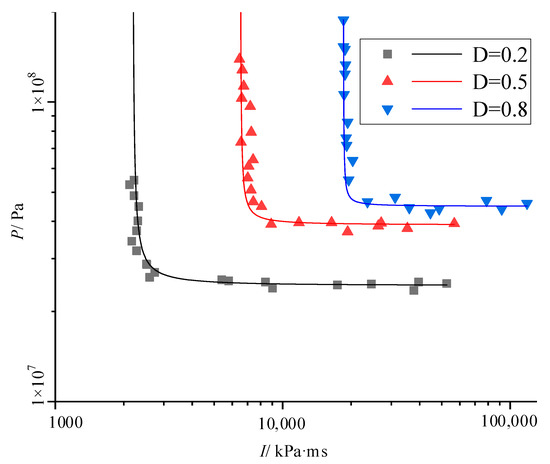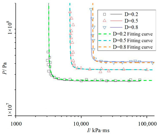 By fitting the critical value of the damage grade to the convergent mathematical expression, the P-I curve can have a clearer mathematical meaning. Combined with the analytical results of Section 2, formula (8) was chosen by referring to the relevant literature in Section 1.