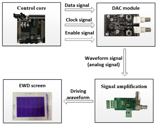 The field programmable gate array (FPGA, Cyclone V) was used for the control unit in our study to realize the EWD device control. The logic control unit is to realize the EWD control logic, including device display timing and waveform editing.