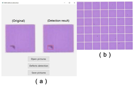 (a) EWD scratch defect detection using the proposed scheme. (b) The picture of EWD device captured by camera.