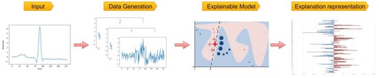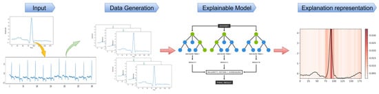 One such model-agnostic approach is the locally interpretable model-agnostic explanation (LIME) [11]. LIME is a well-known explanation method used to simulate the reasonable accuracy of a given ML model. LIME uses perturbation techniques to artificially generate data points around the prediction and then trains an interpretable ML model to explain the prediction. However, LIME has certain limitations and is only applicable to explain tabular, texture, and image data but not time series data such as ECG signals. This is because time series data has a special temporal dependency between features that need to be taken into account to generate meaningful and credible explanations.