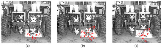 High-speed photographic image analysis of soil disturbance at the contact interface. (a) The planter reaching the lowest point; (b) the duckbill opening to the maximum; and (c) the planter leaving the soil.